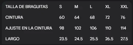 | Talle | S | M | L | XL | XXL |